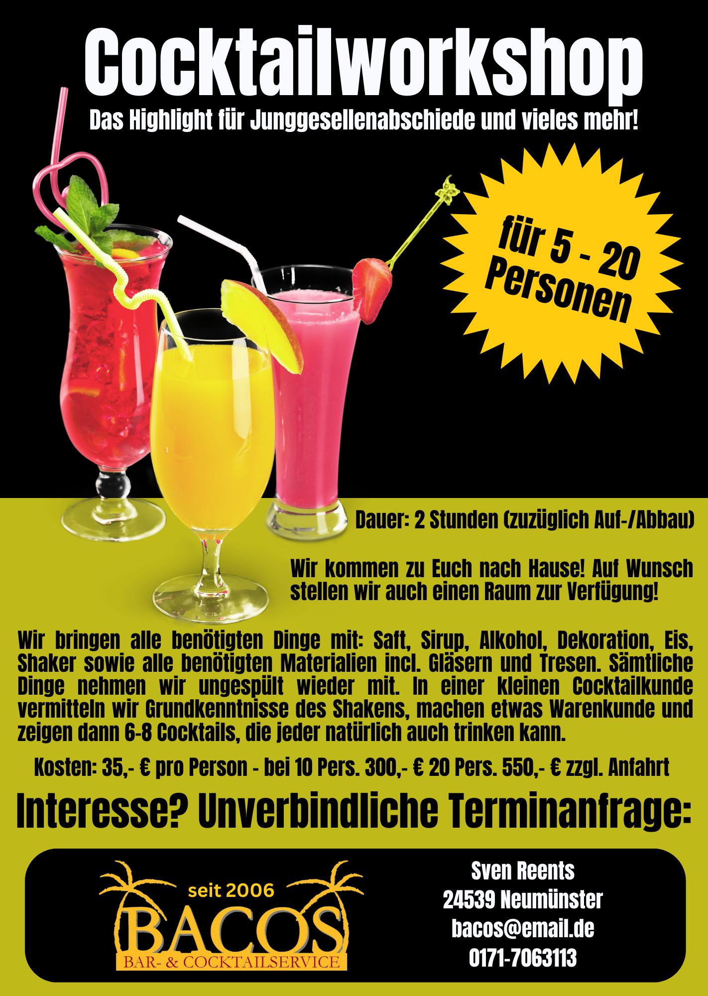 Mit einer mobilen Cocktailbar fing 2006 alles an... Heute sind wir einer der größten Cocktailcaterer Schleswig-Holsteins - egal ob für 20 oder 5000 Gäste!