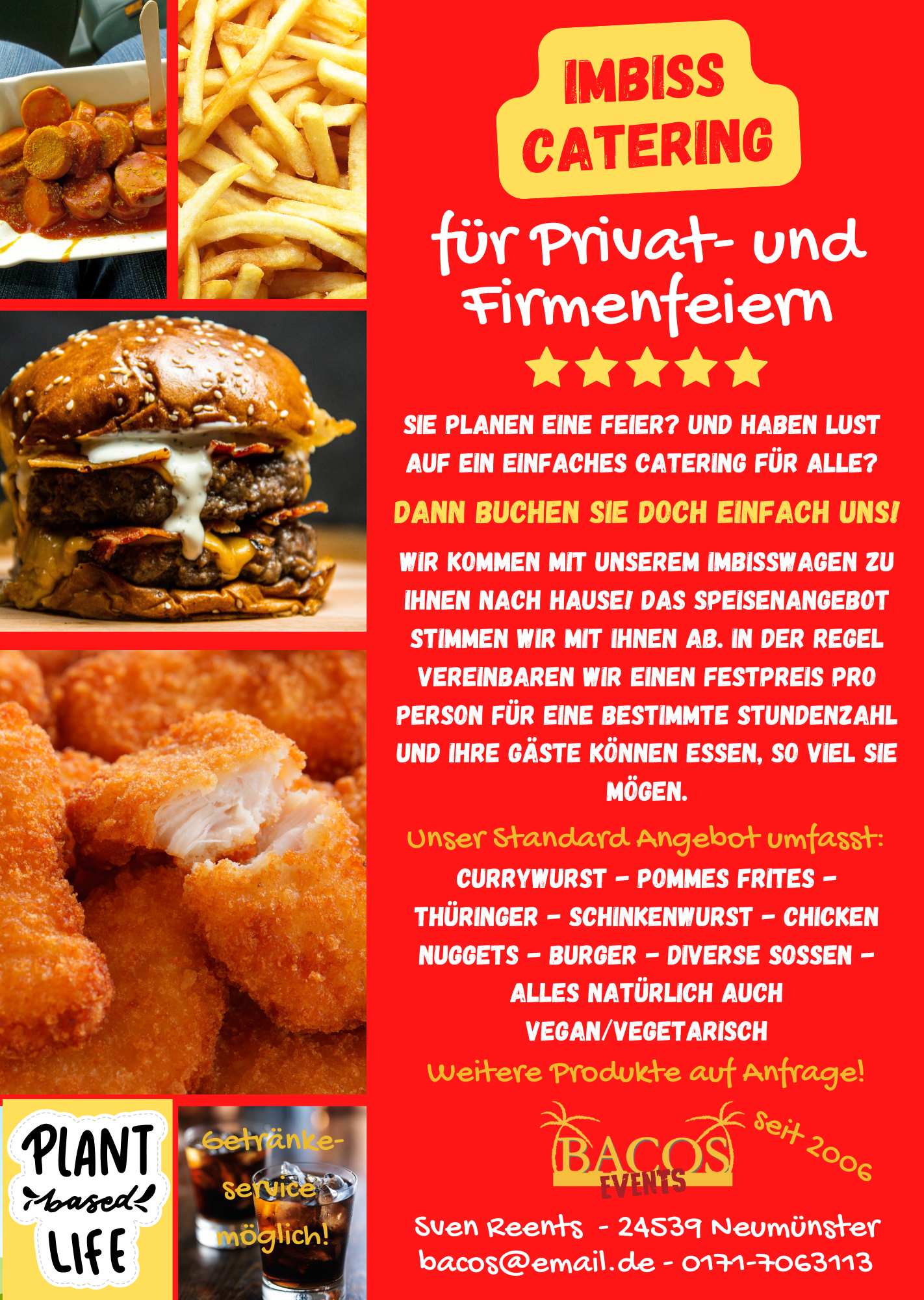 Wir richten Firmen- und Familienfeiern aller Art in ganz Schleswig-Holstein und Hamburg aus. Vom Bierwagen über Sitzmöbel, Zelte, Essen und Getränke sowie geschultes Personal kümmern wir uns um alles!