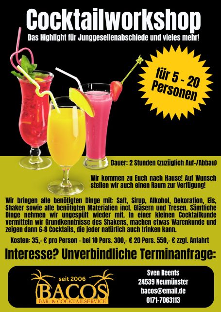 Mit einer mobilen Cocktailbar fing 2006 alles an... Heute sind wir einer der größten Cocktailcaterer Schleswig-Holsteins - egal ob für 20 oder 5000 Gäste!