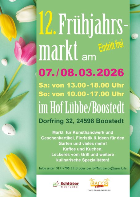 Als Veranstalter laden wir seit 15 Jahren nach Boostedt ein, wo es im März "Frühjahrsmarkt" sowie im November "Martinsmarkt" heißt!